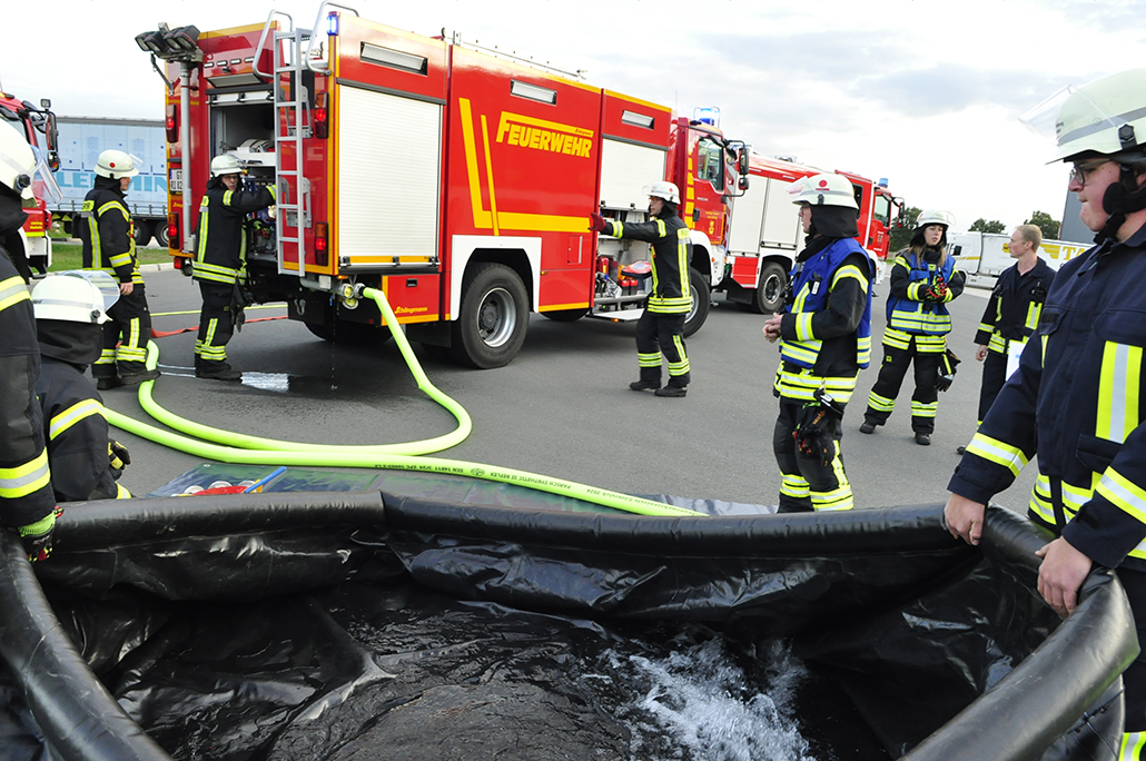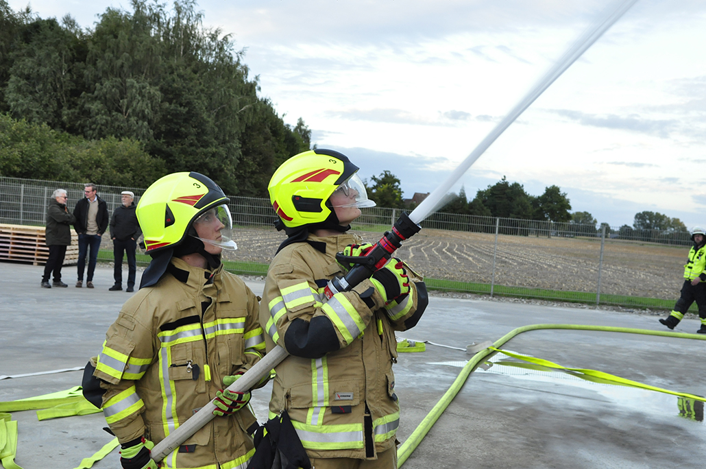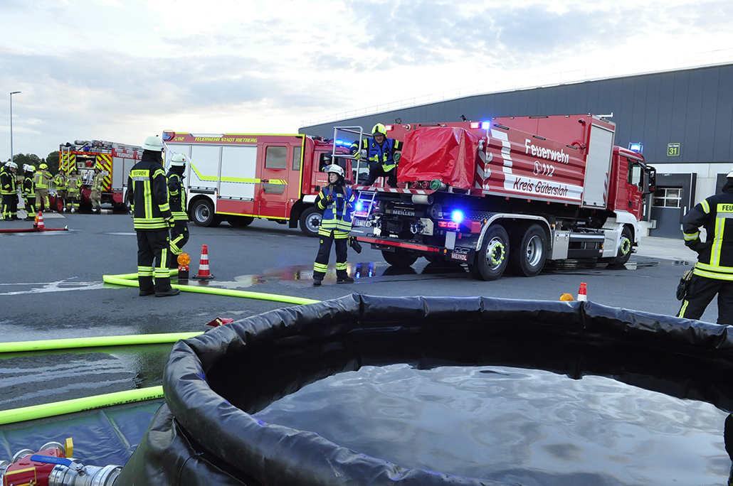 Geschichte geprägt. 200 Einsatzkräfte waren alarmiert, mit ihnen Unterstützung vom Löschzug Westenholz komplett, von Langenberg rückten Drehleiter und Löschfahrzeug an. Ein weiteres kam aus Benteler. 10.000 Liter Löschwasser im Abrollbehälter vom Kreis Gütersloh, sowie DRK Mastholte mit RTW. Laut Plan loderte Feuer in der Halle 12, einer großen Lagerhalle aus der noch vier vermisste Personen gerettet werden mussten. Christian Niermann, stellvertretender Stadtbrandinspektor, leitete den Einsatz und kontrollierte drei Abschnitte. Zentrale Wasserversorgung und Löschbereich Nord bzw. Süd an der Halle. Entscheidend im Ernstfall eine ausreichende Wasserversorgung. Diese sicherten Tankwagen von umliegenden Hydranten. Nach 90 Minuten endete eine erfolgreiche Großübung deren Verlauf interessiert von Kreisbrandmeister Holtkemper, Stadtbrandinspektor Setter, Bürgermeister Sunder und Mitgliedern der Ehrenabteilung verfolgt wurde.