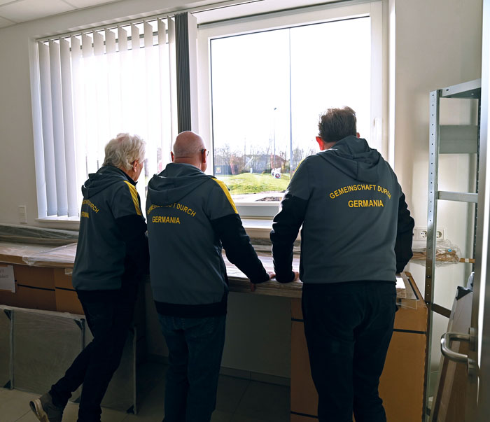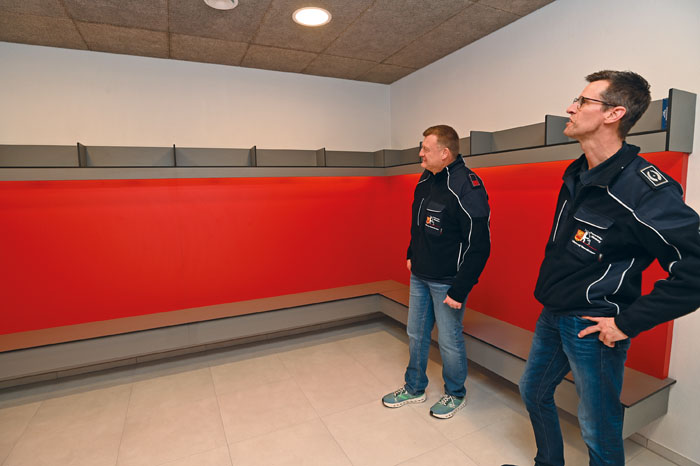 Bei der offiziellen Schlüsselübergabe machten sich Vertreter der heimischen Politik, sowie die Nachbarn der Feuerwehr, Schule, Schützenverein und Sportvereine ein Bild vom neuen Sportheim, das viel Anerkennung bekam. „Wieder eine Sache weniger auf der Prioritätenliste“, freute sich Meinolf Hillemeier, Vorsitzender des Stadtsportverbandes, und überreichte ein ganz besonderes Geschenk. Einen gläsernen Pokal vom Aufstieg, der acht Jahre in seinem Wohnzimmer gestanden habe und nun einen neuen Ehrenplatz bekommt.