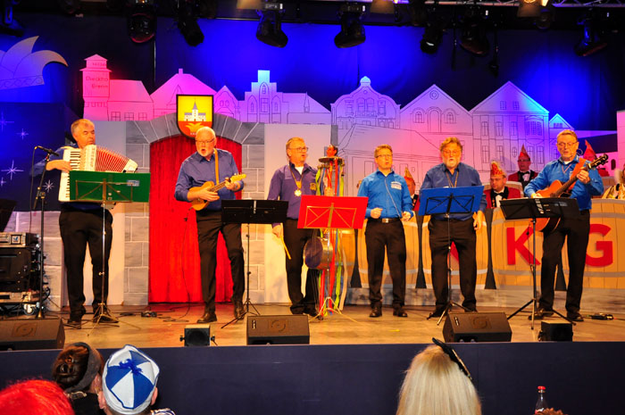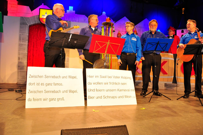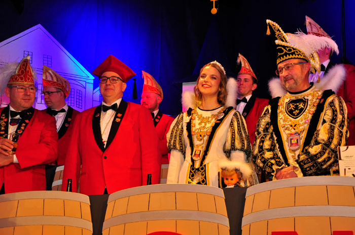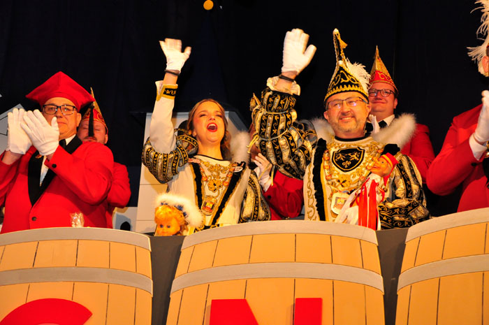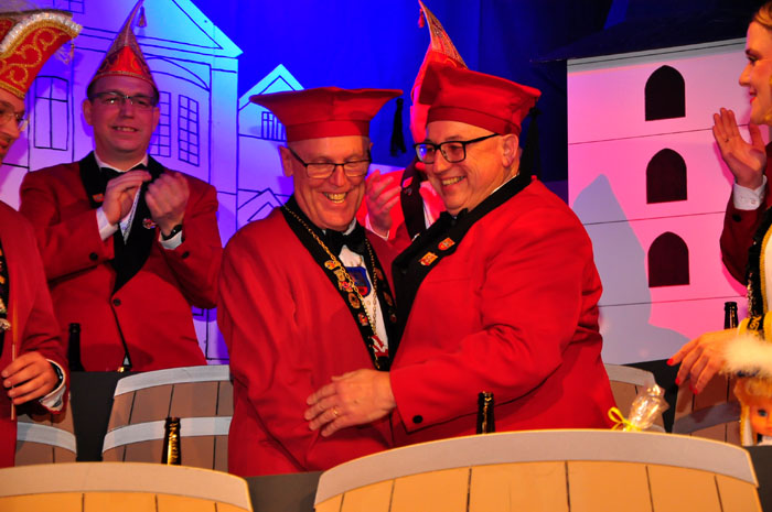 Neuenkirchen (dg). Mit der jährlichen Verleihung des Ehrentitels „Dr. Humoris causa“ beginnt im Wapeldorf die närrische Session. Ein Höhepunkt im Sitzungs-Karneval, am 24. Januar, den „Doktor Vater“ Günter Setter spannend machte. Als sich seine geschickten Info-Mosaike fürs Publikum zu einem Gesamtbild reihten, folgten Jubel und Applaus. Unter Klängen der akademischen Hymne “Gaudeamus igitur“ zog Andreas Dreier (62) als neuer „Dr. Humoris causa“ stilecht in den Narrensaal ein. Wahrlich eine ortsbekannte, aktive Größe. Seit 1975 bei Kolping, verheiratet mit Steffi, stolz auf Tochter Jana, beruflich in der Verwaltung des örtlichen Altersheimes, aktiver Schütze. CDU-Politiker im Kreistag, sportlich Schalke-Fan, Redenschreiber und vieles mehr. Dem Höhepunkt im ersten Teil des Programms folgen weitere. Amtlich wurde es bei den KKGN-Nachrichten von Dik Fatze, alias Manfred Hesse. Er meldet, dass Reizwäsche nicht jucken muss. Verlas fehlerfrei in Profi-Sprecher-Qualität minutenlang Neues aus Druffels-Barbaras Rhabarber-Bar. Ein Zungenbrecher mit irren Wortkonstellationen, der begeisterten Szenenapplaus auslöste. Großartig. Büttenprofis wie Wolfgang Hesse „Der Hausmeister“, Ralf Setter als „Hacho“ sind Garanten für Zwergfell-Akrobatik. Letzterer hatte sich beim Reiten gefährlich im Steigbügel verfangen. „Ich hatte totale Panik, bis der Marktleiter den Stecker gezogen hat“. Prinzengarde, Tanzmariechen Ida Gieseker, Blue Angels, Eyecatcher, Fire Guardians, DanceSation, Tanzshows vom Feinsten. Zugaben selbstverständlich! Kapselbar und Dorfgraben-Sänger stimulierten die Narren zur aktiven Chorgemeinschaft. Ein großartiger Abend, charmant moderiert von Anna Christianhemmers. Musikalisch begleitet von Showband „Festivity.