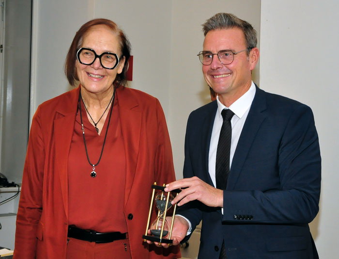 Der hat Erfahrung, denn seit 2012 ist er im Amt und wurde mit 77,8 Prozent wiedergewählt. „Wir wissen“, so Schneiders, die herzlich zur Wahl gratuliert, „Kommunalpolitik ist selten einfach. Sie erfordert Abwägung, Kompromissfähigkeit und ein hohes Maß an Verlässlichkeit“. Lobt seine Dialog-Offenheit in der Vergangenheit und wünscht sie für die Zukunft. Mit einer Sanduhr als Zeitmesser schickt sie Andreas Sunder an die Arbeit. Die erlaubt ihm max. 15 Minuten Redezeit zu einem Thema. Es folgt die einstimmige Wahl der vorgeschlagenen Ortsvorsteher.
