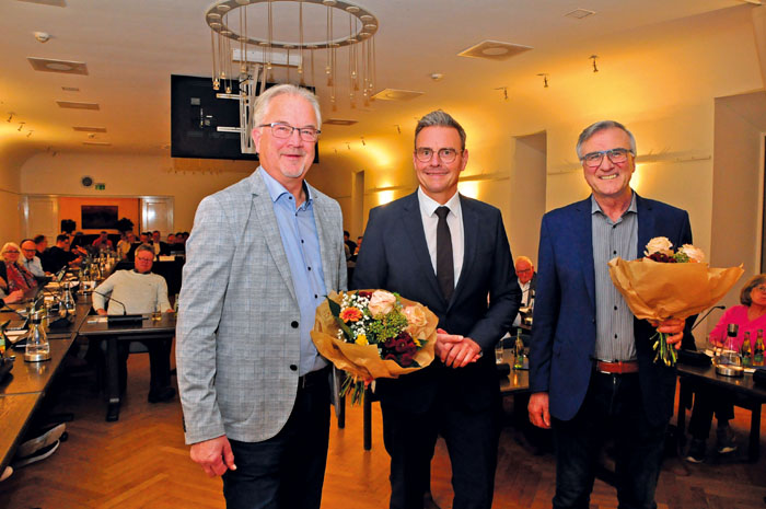 So ist entsprechend dem bekannten Sprichwort, guter oder großer Rat halt teuer. In ihm sind sieben Parteien mit folgender Sitzverteilung vertreten. CDU (20 Sitze), UWG (12), Grüne (4), SPD (3), FDP (2), Die Linke (2), AFD (1). Zusätzlich zählt die Stimme des Bürgermeisters bei Abstimmungen. Somit bleibt spannend wie sich zukünftig bei dieser Konstellation Mehrheiten bilden. Dazu gab es gleich am ersten Sitzungstag reichlich Gelegenheiten. 49 Tagesordnungspunkte (TOP) standen auf der Agenda. Dabei handelte es sich bei 32 TOPs ordnungsgemäß um Bildung und Besetzung von Ausschüssen und Gremien, das fand mehrheitlich Zustimmung. Soweit vorab. Als Altersvorsitzende fühlte sich Christiane Schneiders (SPD) besonders geehrt, die erste Sitzung des neuen Rates zu eröffnen. Dankte allen politisch engagierten Menschen, die im Wahlkampf aktiv waren und denen die im neuen Parlament ihr Mandat ausüben. Schaut perspektivisch auf die kommende Amtszeit und damit verbundenen Aufgaben, wie Haushaltsanierung, nachhaltige Stadtentwicklung, Klimaschutz und vieles mehr. „Wir alle sind gewählt, um unsere Stadt voranzubringen. Die Bürgerinnen und Bürger erwarten von uns keine Schaufensterreden, sondern lösungsorientiertes Arbeiten, Pragmatismus und Respekt voreinander.“ Uns allen wünsche ich, dass wir trotz mancher hitzigen Debatten uns immer wieder daran erinnern, warum wir hier sind: weil wir unsere Stadt schätzen und sie für die Zukunft aufstellen wollen, appelliert die Vorsitzende und eröffnet die Sitzung. Nun folgt die „Einführung des Bürgermeisters ins Amt“.