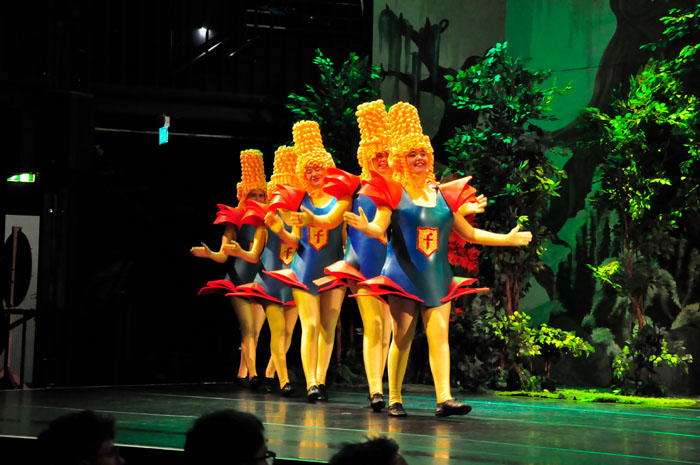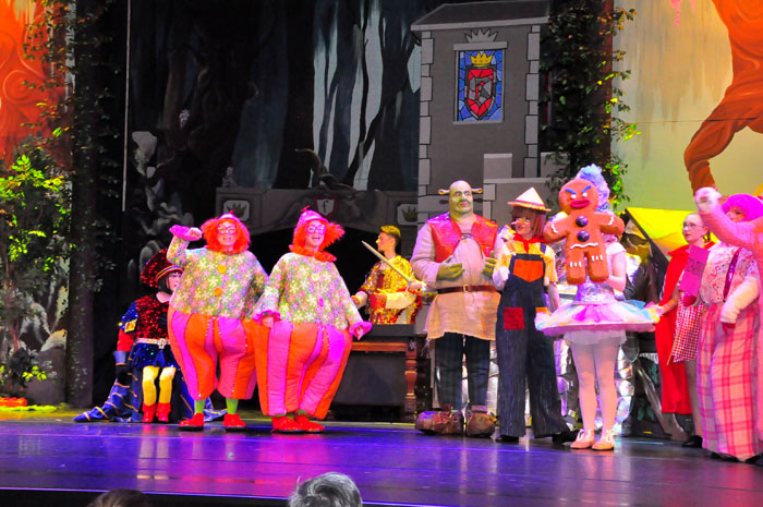 Rietberg (dg). Wenn schon beim Final-Song das Publikum jubelnd aufspringt, frenetisch applaudiert und seiner Bewunderung freien Lauf lässt, dann spricht das für sich. Mit ihrem Weihnachts-Musical „Shrek“, hat die JMB die größte und aufwendigste Produktion ihrer langen Geschichte realisiert. 60 Schauspieler in 180 märchenhaften Kostümen, ergänzt durch ein großes Produktions-Team, sind zunächst nur nackte Zahlen, die Volumen andeuten. Das künstlerische Ergebnis, präsentiert bei der Premiere, Samstag, 29.11. im Musentempel Cultura, war grandios!