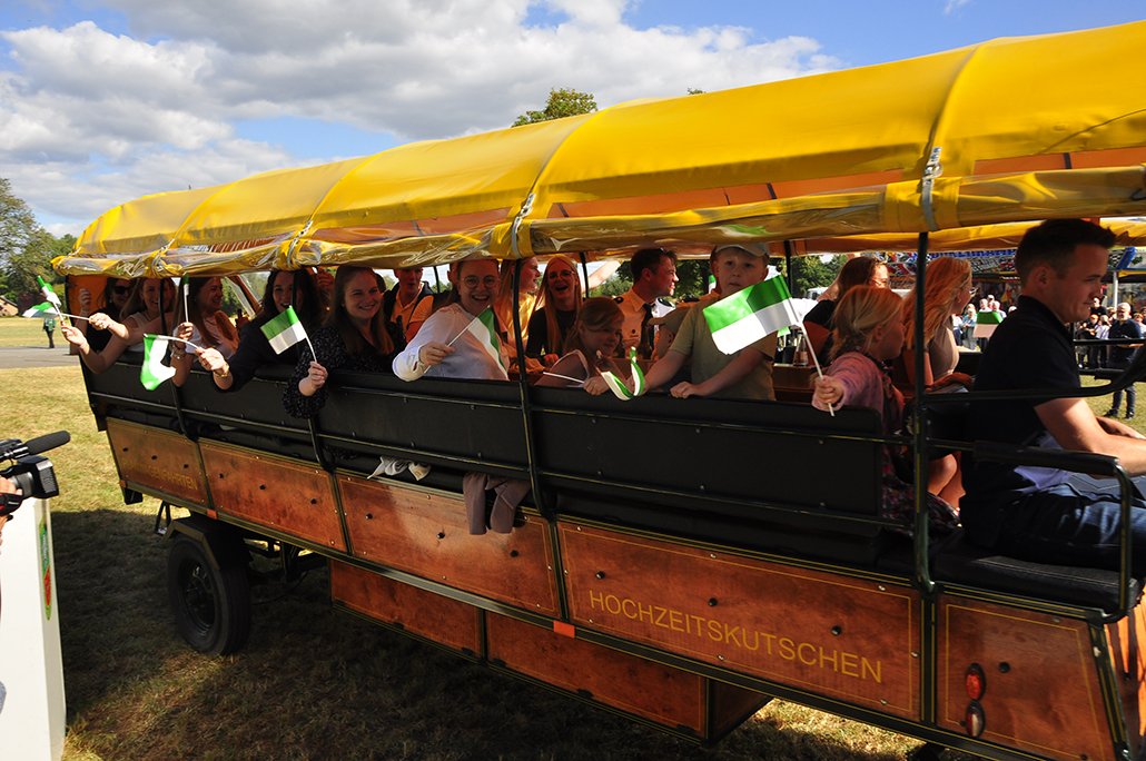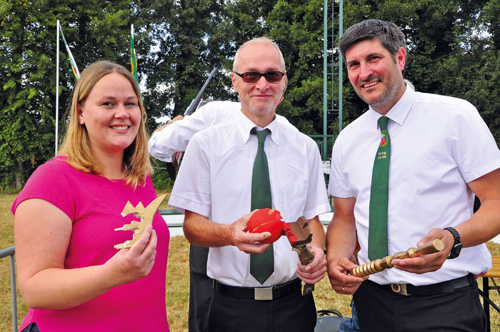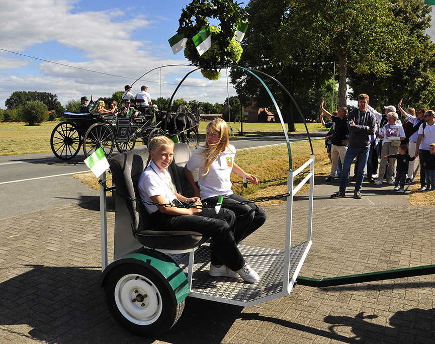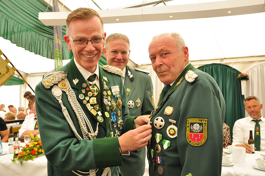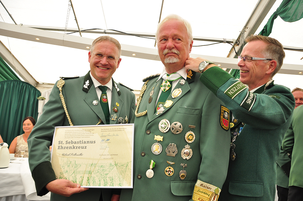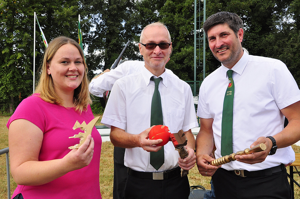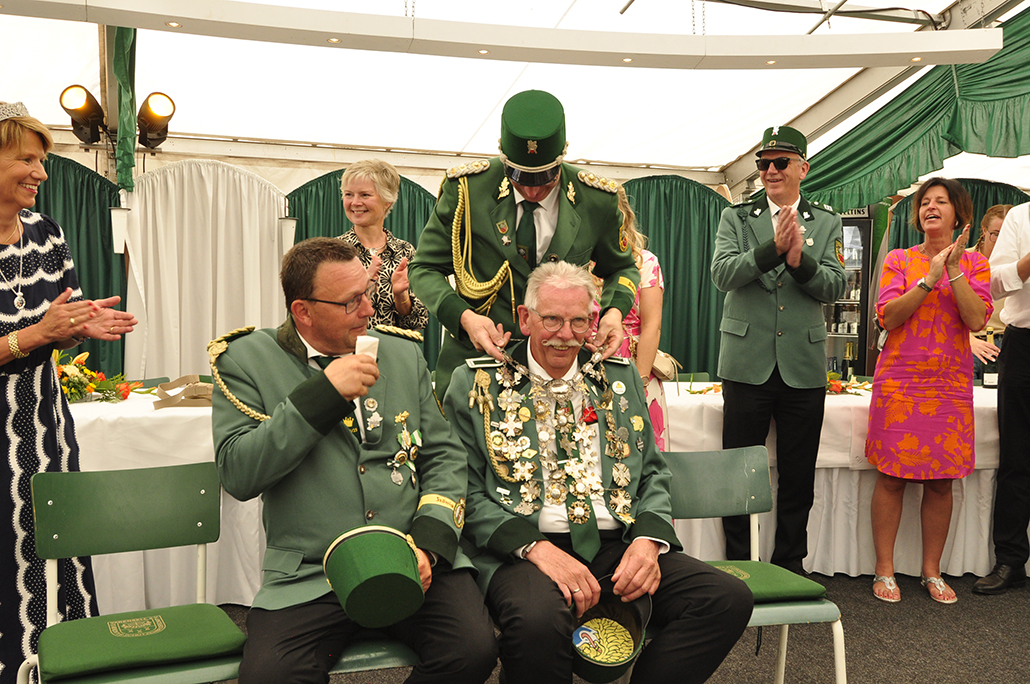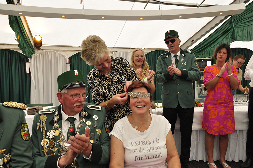 Ein abwechslungsreiches, traditionelles Festprogramm hatte schon am Sonntag seine beliebten Höhepunkte, nachdem am Samstag, dem 23. August, Gefallenen-Ehrung und Großer Zapfenstreich den Auftakt bildeten. Zu Ehren des amtierenden Königspaares Ulrich III. & Königin Sonja I. mit ihrer stimmungsstarken Throngesellschaft luden herrschaftliche Pferdekutschen ein, Platz zu nehmen zum umjubelten Festumzug. Durch den Dorfkern marschierten hunderte Schützen, Gastvereine aus Druffel und Bokel, rhythmisch begleitet vom Musikverein Westerwiehe und Spielmannszug Neuenkirchen zum Festplatz. Während der anschließenden eindrucksvollen Parade galt der Applaus der Zeremonie, den eleganten Throngemeinschaften und Jubelkönigen. Am frühen Sonntagabend fieberten Benediktus-Jungschützen ihrem heißen Wettkampf um neue Königswürden entgegen. Jener endete mit der 289. Bleikugel die den hölzernen Restvogel aus dem Kugelfang löste. Stolz und mit erhöhter Herzfrequenz streckte Vitus Hellweg siegreich als neuer Jungschützenkönig, die Arme in den Abendhimmel. Zu seiner Königin wählte der 23-jährige Vitus, Lea Habig (22), Lehramts-Studentin und Tochter vom Ehren-Brudermeister. Majestäten, Schützen und Dorfgemeinschaft feierten beim abendlichen Festball mit den EMSperlen. Einem Festgottesdienst am Montagmorgen folgte das traditionelle Frühstück im Schützenzelt, bei dem alle Plätze restlos besetzt sind. Erfreut über Resonanz begrüßte Ralf Hesse zahlreiche Gäste. Unter ihnen NRW-Landtagspräsident André Kuper, Ralf Brinkhaus MdB, Landrat Sven Adenauer, BM Andreas Sunder sowie Bezirksbrudermeister Stefan Wellerdiek. Jener brachte ehrende Auszeichnungen mit und überraschte Wolfgang Schulte mit dem Ehrenkreuz des Sports in Bronze, Dirk Strunz und Dieter Vorderbrüggen mit einem Silbernen Verdienstkreuz, Wolfgang Köckerling mit dem Hohen Bruderschaftsorden und Ulrich Pollmeier mit einem St.-Sebastianus-Ehrenkreuz. Antreten zum Vogelschießen folgte als ersehnter Befehl. Besucher und Grünröcke fieberten dem Höhepunkt des sonnigen Tages entgegen. Was dann begann hat Seltenheitswert in der Bruderschaft. Verlockend thronte der schmucke Vogel im Kugelfang. Zeigte sein wahres Gesicht erst nach und nach. Zäh wie Leder trotze er einem spannenden Dauerbeschuss. Feuerpause, Waffenwechsel (heiße Gewehrläufe), Munitionsnachschub bereiteten den Schießmeistern ein turbulentes Finale. Das teilten sich im Wechsel um den Titel Wolfgang Wiesbrock und Gerd Strohm. Um 14.50 Uhr machte der 692. Schuss (!) den 69-jährigen Gerd Strohm zum umjubelten König, auf der prallvollen Vogelwiese. Mit seiner Ehefrau Annette führt er die Schützen ins Jubiläumsjahr 2026. Da feiert die Bruderschaft 75sten Geburtstag. Nach der Parade am späten Nachmittag folgte eine rauschende Ballnacht am letzten Festtag.