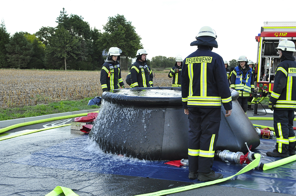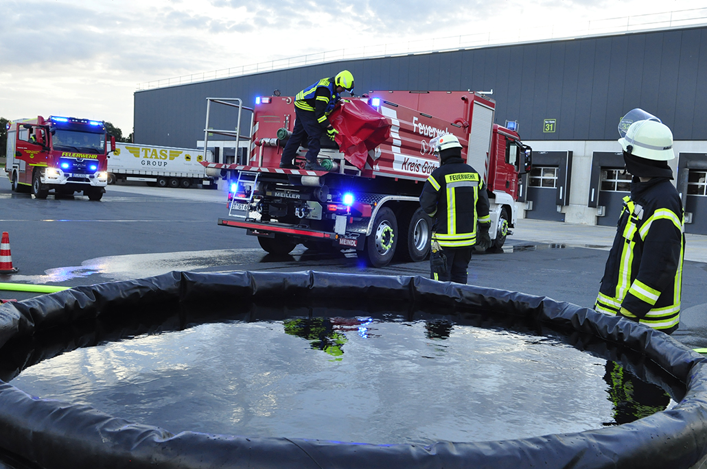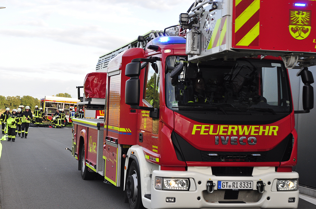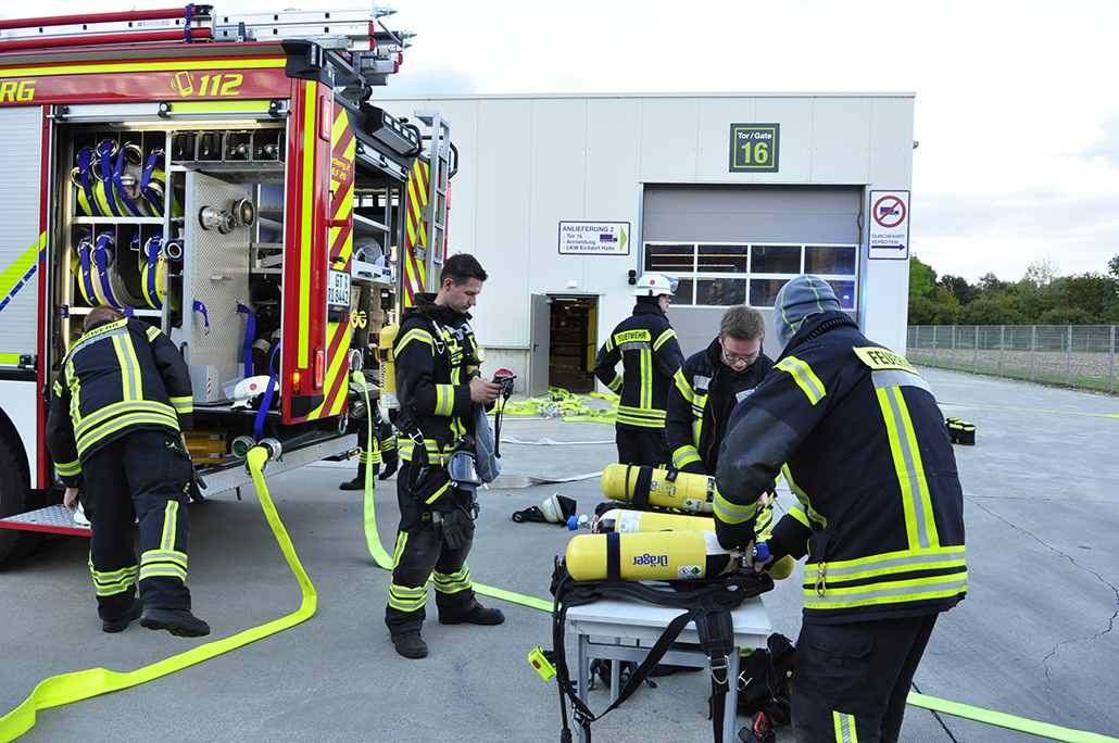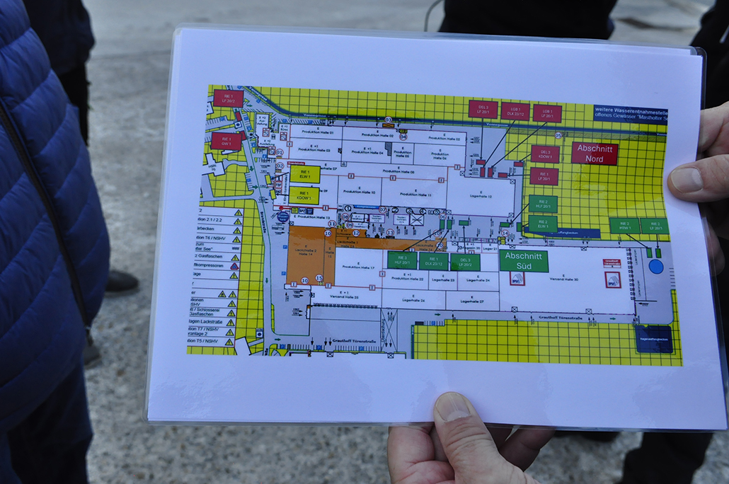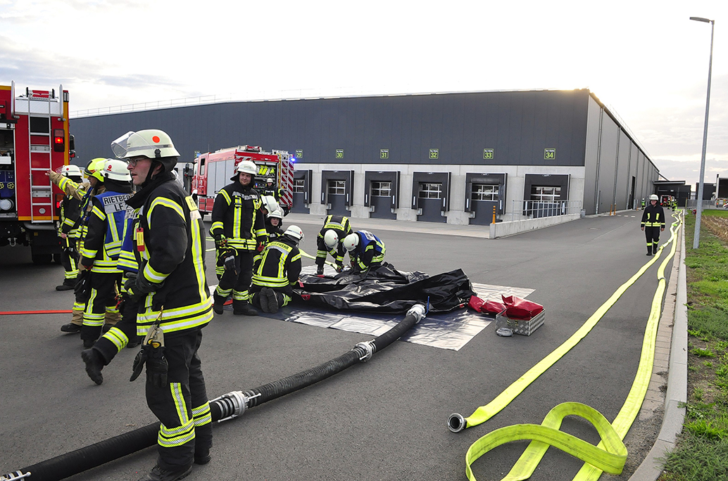 Geschichte geprägt. 200 Einsatzkräfte waren alarmiert, mit ihnen Unterstützung vom Löschzug Westenholz komplett, von Langenberg rückten Drehleiter und Löschfahrzeug an. Ein weiteres kam aus Benteler. 10.000 Liter Löschwasser im Abrollbehälter vom Kreis Gütersloh, sowie DRK Mastholte mit RTW. Laut Plan loderte Feuer in der Halle 12, einer großen Lagerhalle aus der noch vier vermisste Personen gerettet werden mussten. Christian Niermann, stellvertretender Stadtbrandinspektor, leitete den Einsatz und kontrollierte drei Abschnitte. Zentrale Wasserversorgung und Löschbereich Nord bzw. Süd an der Halle. Entscheidend im Ernstfall eine ausreichende Wasserversorgung. Diese sicherten Tankwagen von umliegenden Hydranten. Nach 90 Minuten endete eine erfolgreiche Großübung deren Verlauf interessiert von Kreisbrandmeister Holtkemper, Stadtbrandinspektor Setter, Bürgermeister Sunder und Mitgliedern der Ehrenabteilung verfolgt wurde.