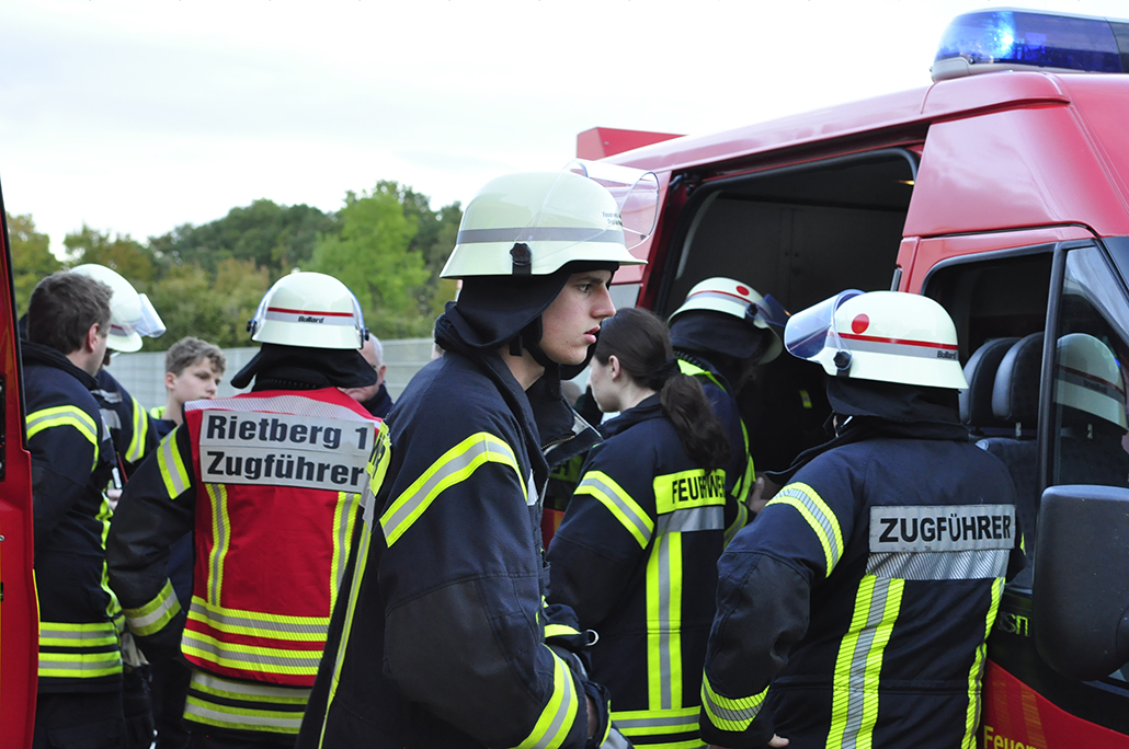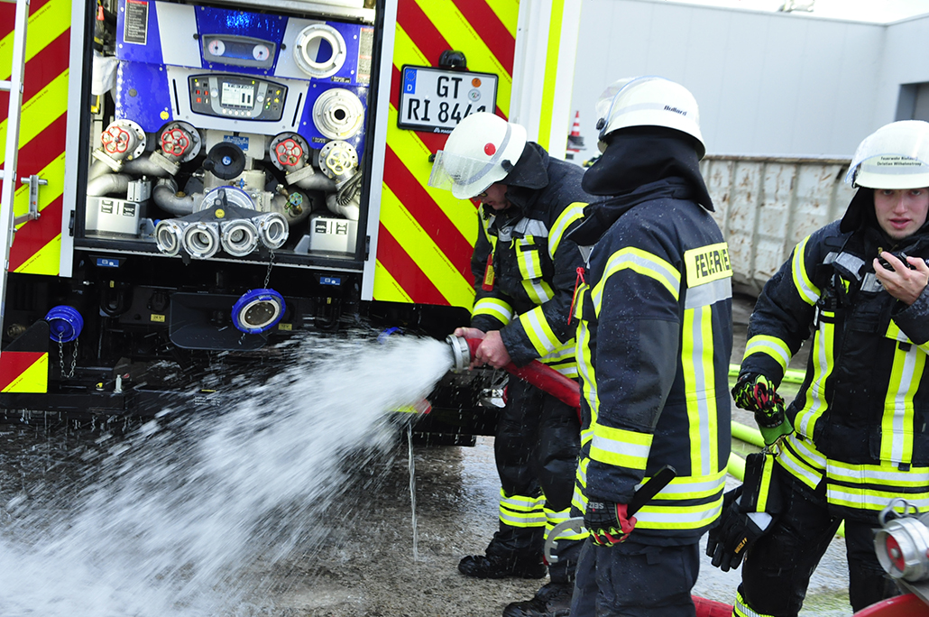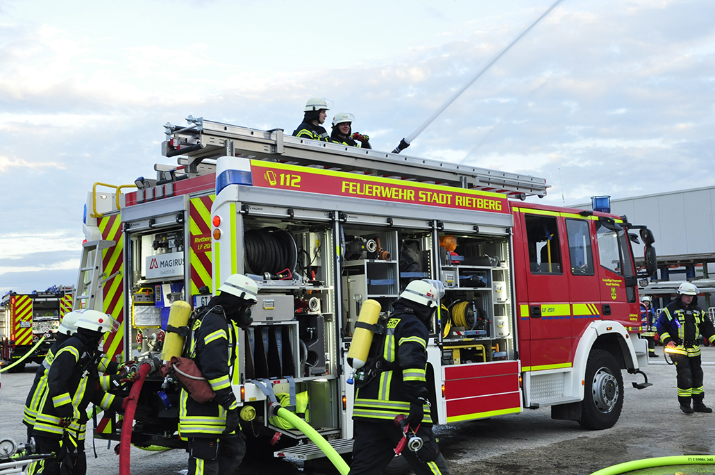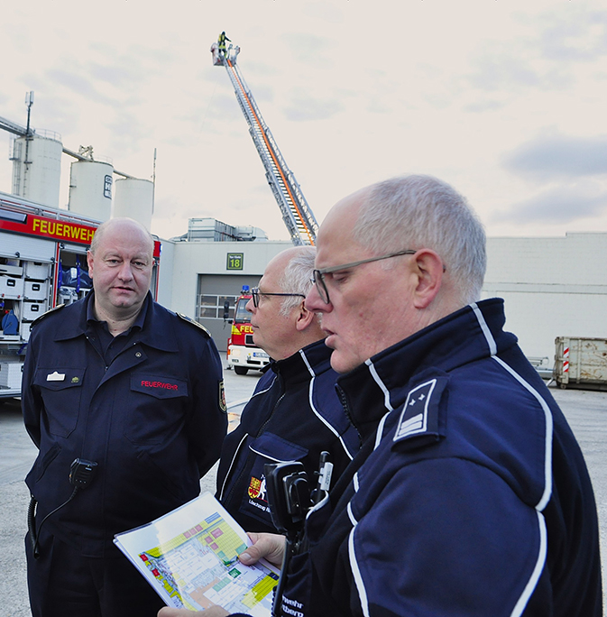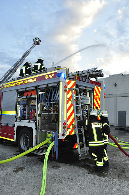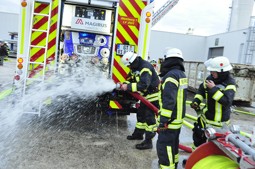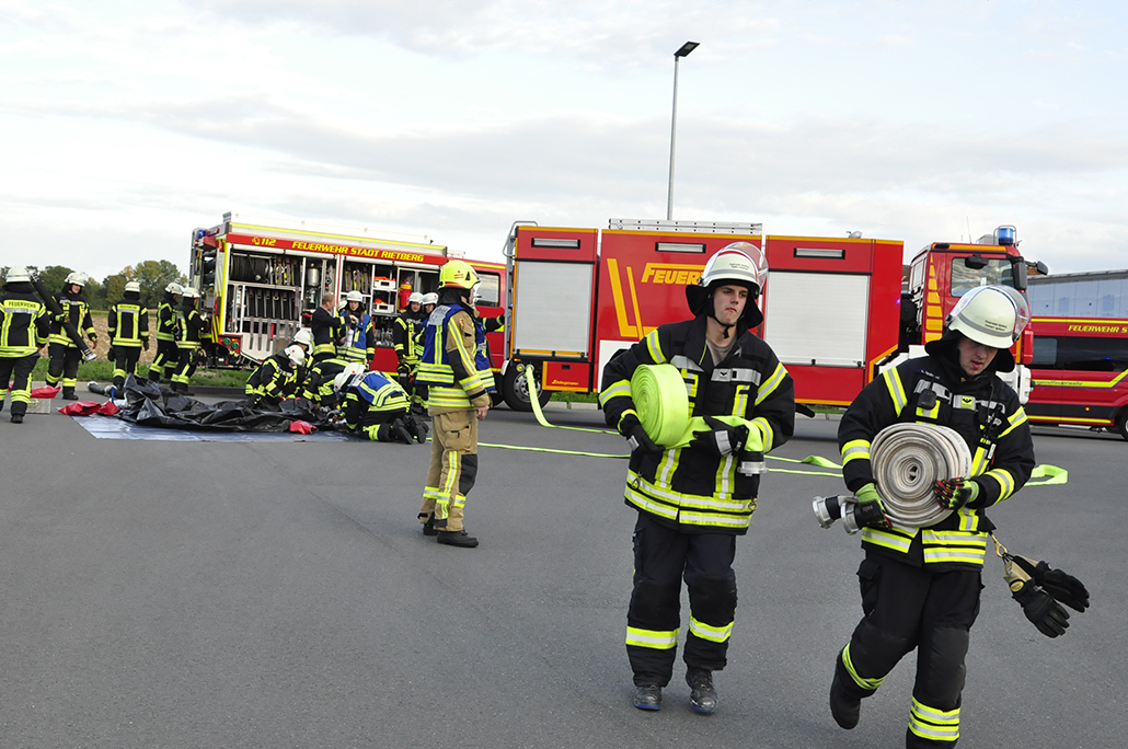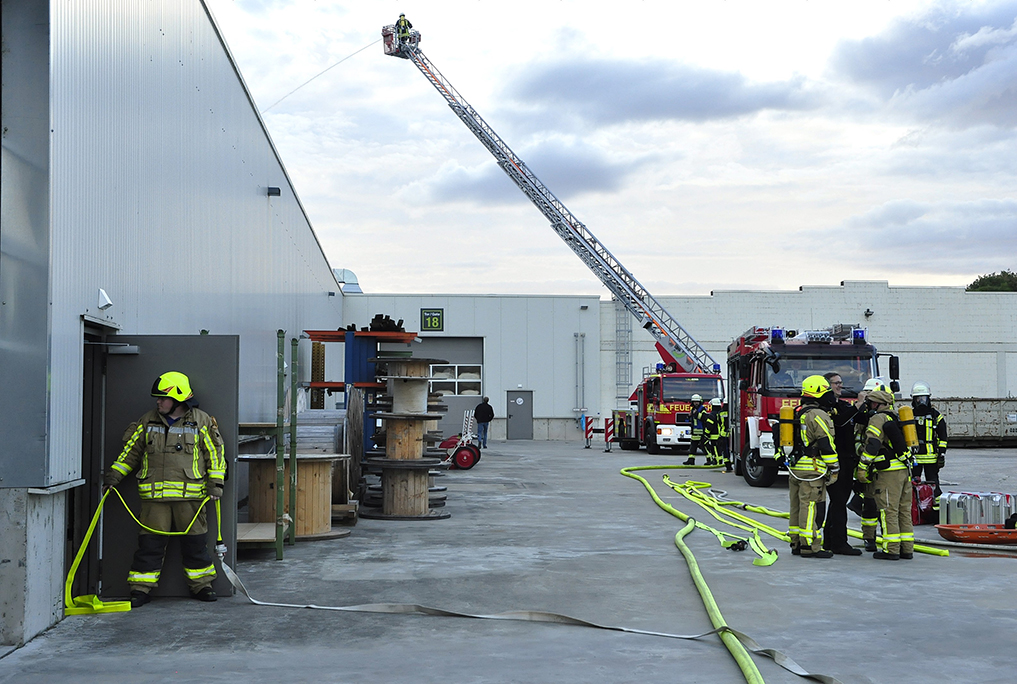 Mastholte (dg). Die Organisation der jährlich großen Stadtübung aller drei Löschzüge in Rietberg lag am Montag, 22. September, in Händen der Mastholter Kameraden. Löschzugführer Günter Poll und sein Team hatten das holzverarbeitende Unternehmen an der Brandstraße ausgewählt, weil die Produktionsstätte in den letzten Jahren, aufgrund kontinuierlicher Markterfolge, enorm vergrößert wurde. Positives Echo kam direkt von Wolfgang und Heinz Grauthoff, den geschäftsführenden Gesellschaftern der Türengruppe. Denn zweimal schon, 1967 und 1985 (Blitzschlag) haben Großbrände mit respektvol-