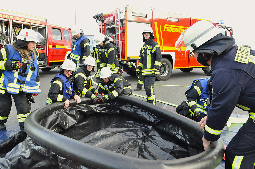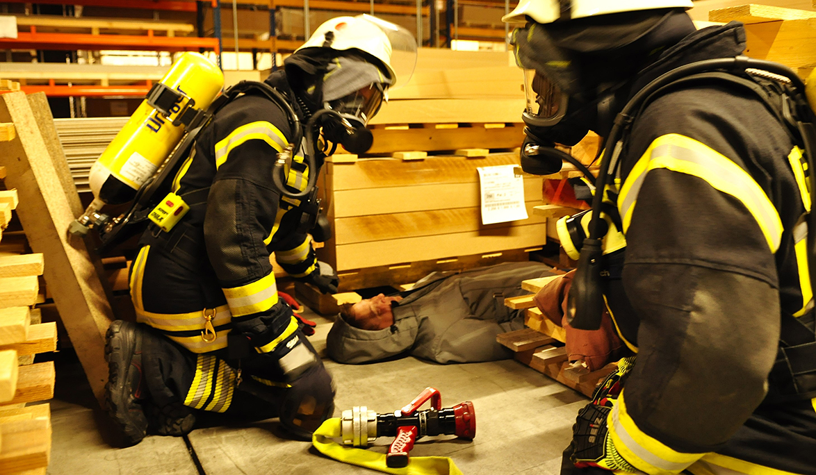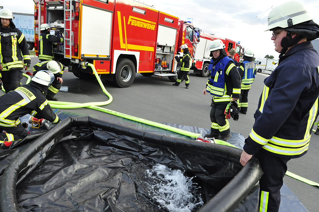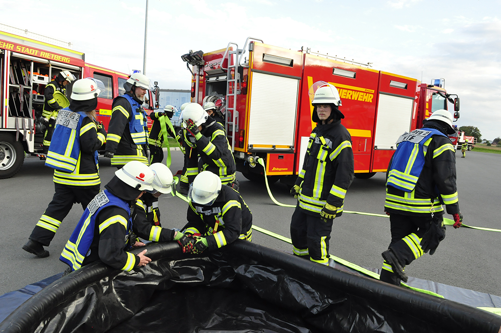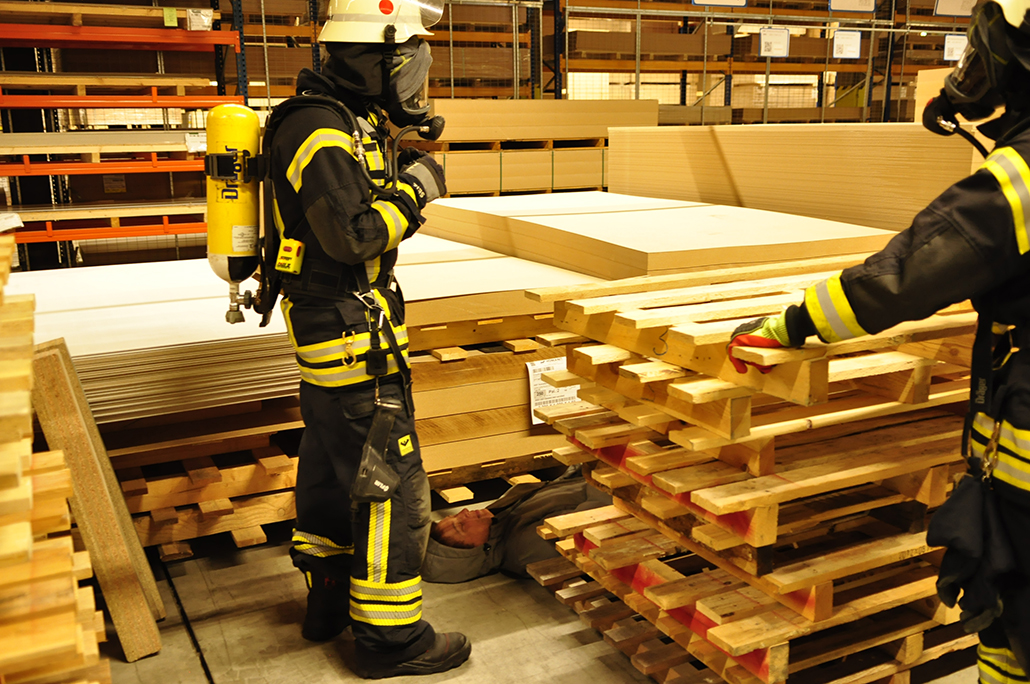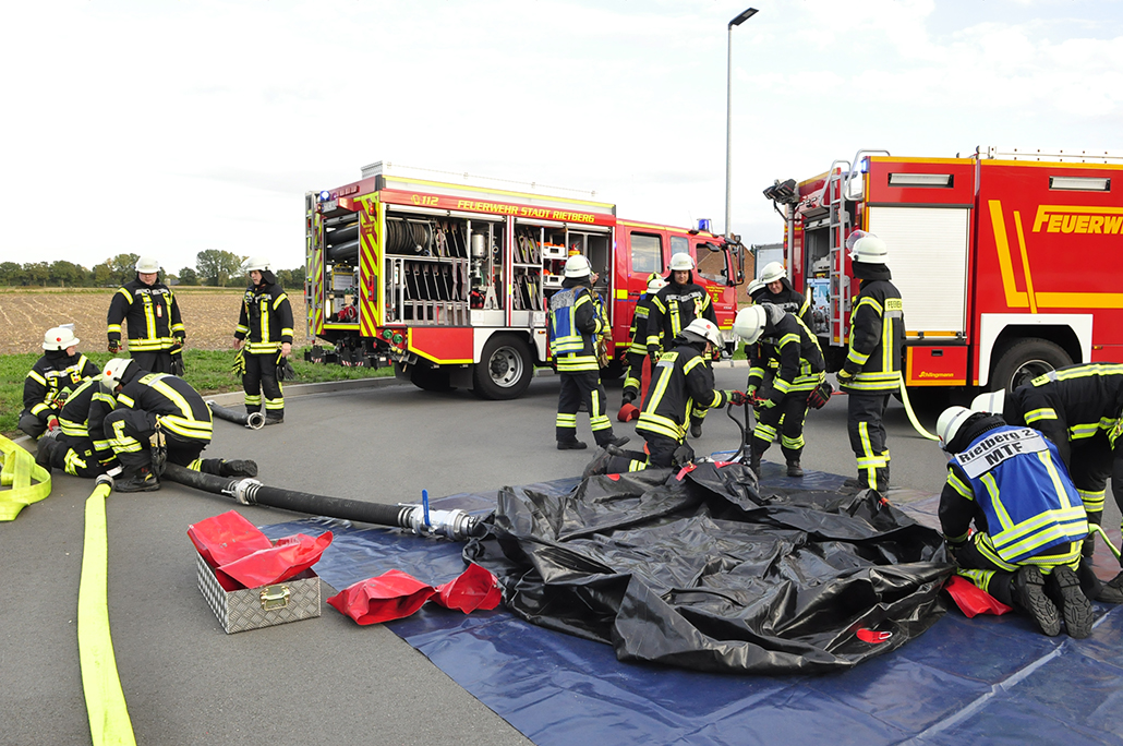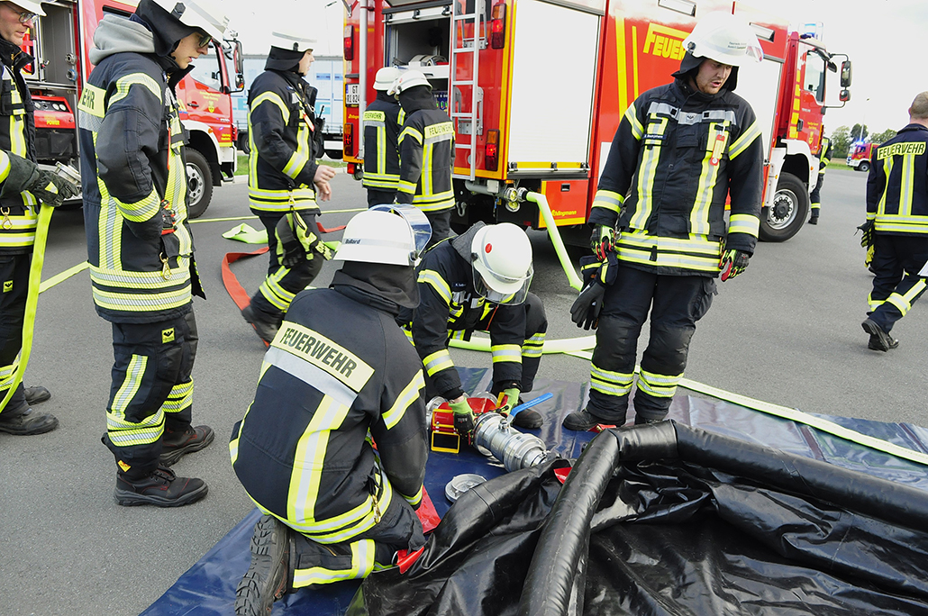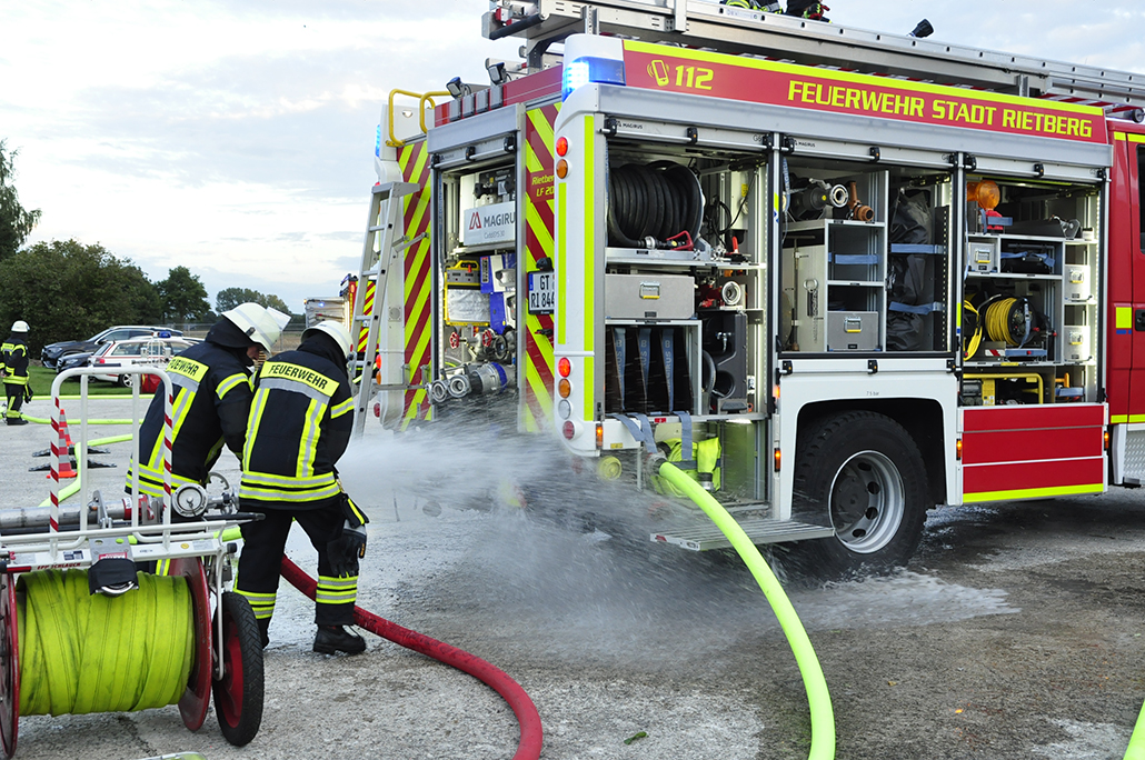 Mastholte (dg). Die Organisation der jährlich großen Stadtübung aller drei Löschzüge in Rietberg lag am Montag, 22. September, in Händen der Mastholter Kameraden. Löschzugführer Günter Poll und sein Team hatten das holzverarbeitende Unternehmen an der Brandstraße ausgewählt, weil die Produktionsstätte in den letzten Jahren, aufgrund kontinuierlicher Markterfolge, enorm vergrößert wurde. Positives Echo kam direkt von Wolfgang und Heinz Grauthoff, den geschäftsführenden Gesellschaftern der Türengruppe. Denn zweimal schon, 1967 und 1985 (Blitzschlag) haben Großbrände mit respektvol-