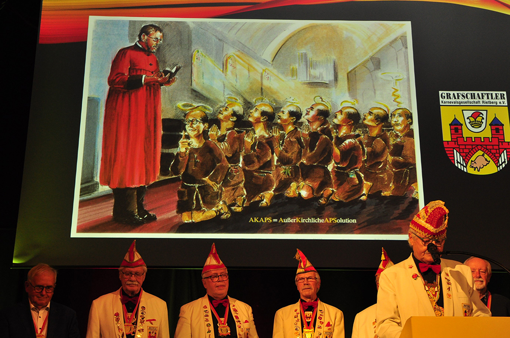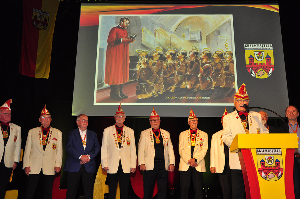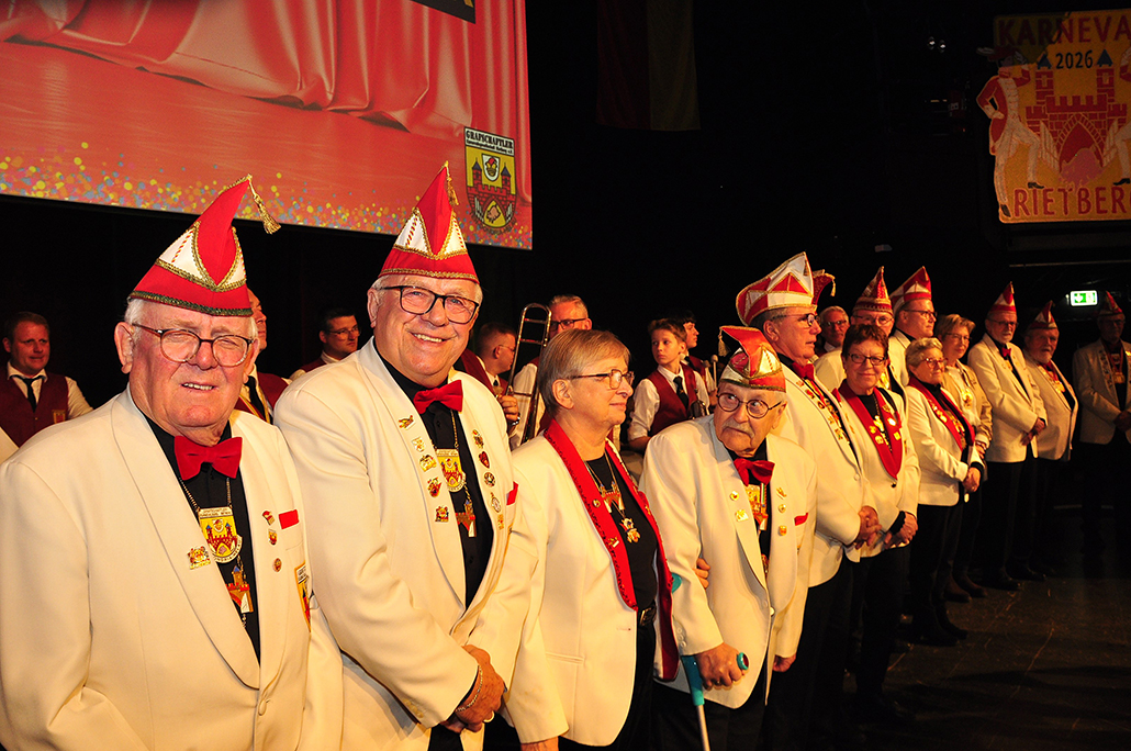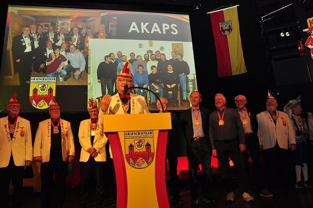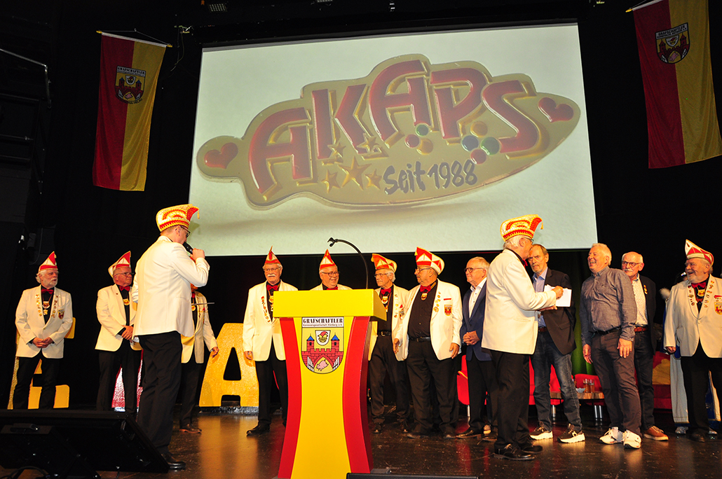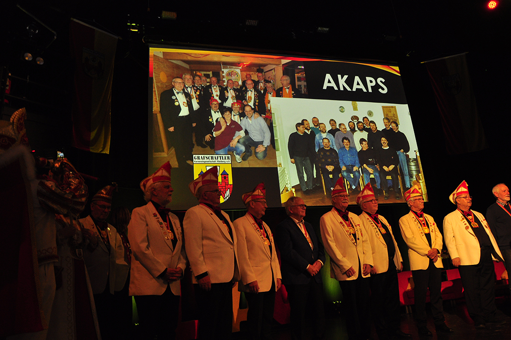 sich zu Publikumslieblingen tanzten, werden fehlen. Zum Abschied waren sie noch einmal in einigen Videoclips auf der Leinwand. Auftritte vom Fanfarenzug und ­Jeckbeat heizten die Feierstimmung an, bis Präsident Holger Hanhardt Akteure zur Ehrung für ihr großartiges närrisches Lebenswerk auf die Bühne rief – „Die AKAPS“. Ehrenpräsident Gerd Muhle erinnerte mit seiner Laudatio an 21 Jahre Bühnen- und 32 Jahre Zugaktivitäten. Der RSA berichtet in seiner Karnevalsausgabe 2026 darüber.