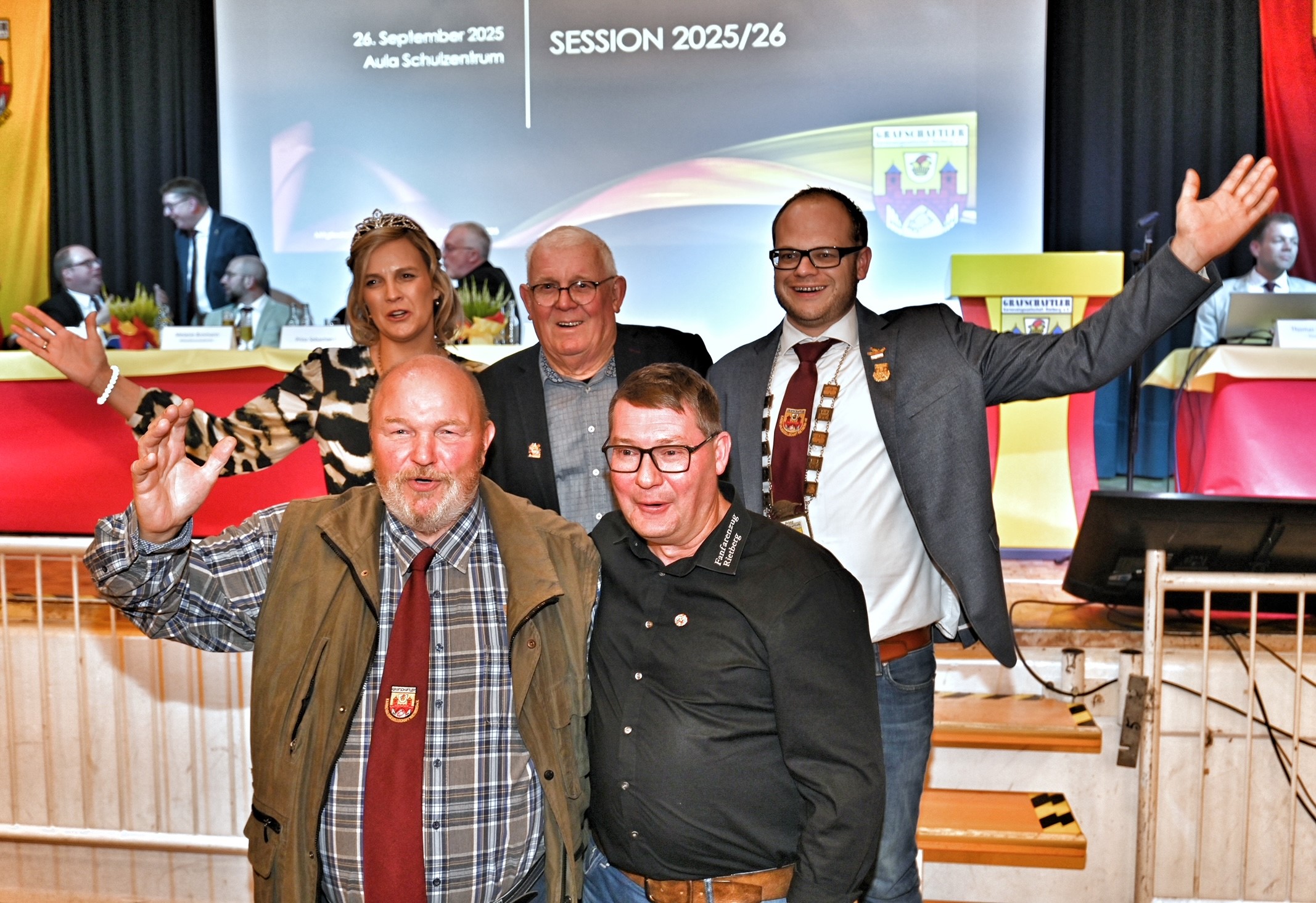 Rietberg ist eine Narren-Hochburg, dies bestätigten nicht nur die Rückblicke auf den bunten Straßenkarneval und die ausgebuchten Saalsitzungen, sondern auch der Anstieg der Mitgliederzahlen. 76 neue Jecken konnten die Grafschaftler im letzten Jahr aufnehmen und wuchsen damit auf 1341 Mitglieder – davon 333 unter 26 Jahren. „Wir können stolz auf die Gesellschaft sein“, fasste Schriftführer Julian Vertkersting zusammen und durfte sich nach den Aktivitätsberichten aus den Abteilungen Altweiber, Elferrat, Fanfarenzug und Karnevalsjugend bestätigt sehen. Ein lebendiger Verein, der jung und alt gleichermaßen anspricht. Und dessen Angehörige sich durch Eigeninitiative, Einsatzbereitschaft und Freude auszeichnen.