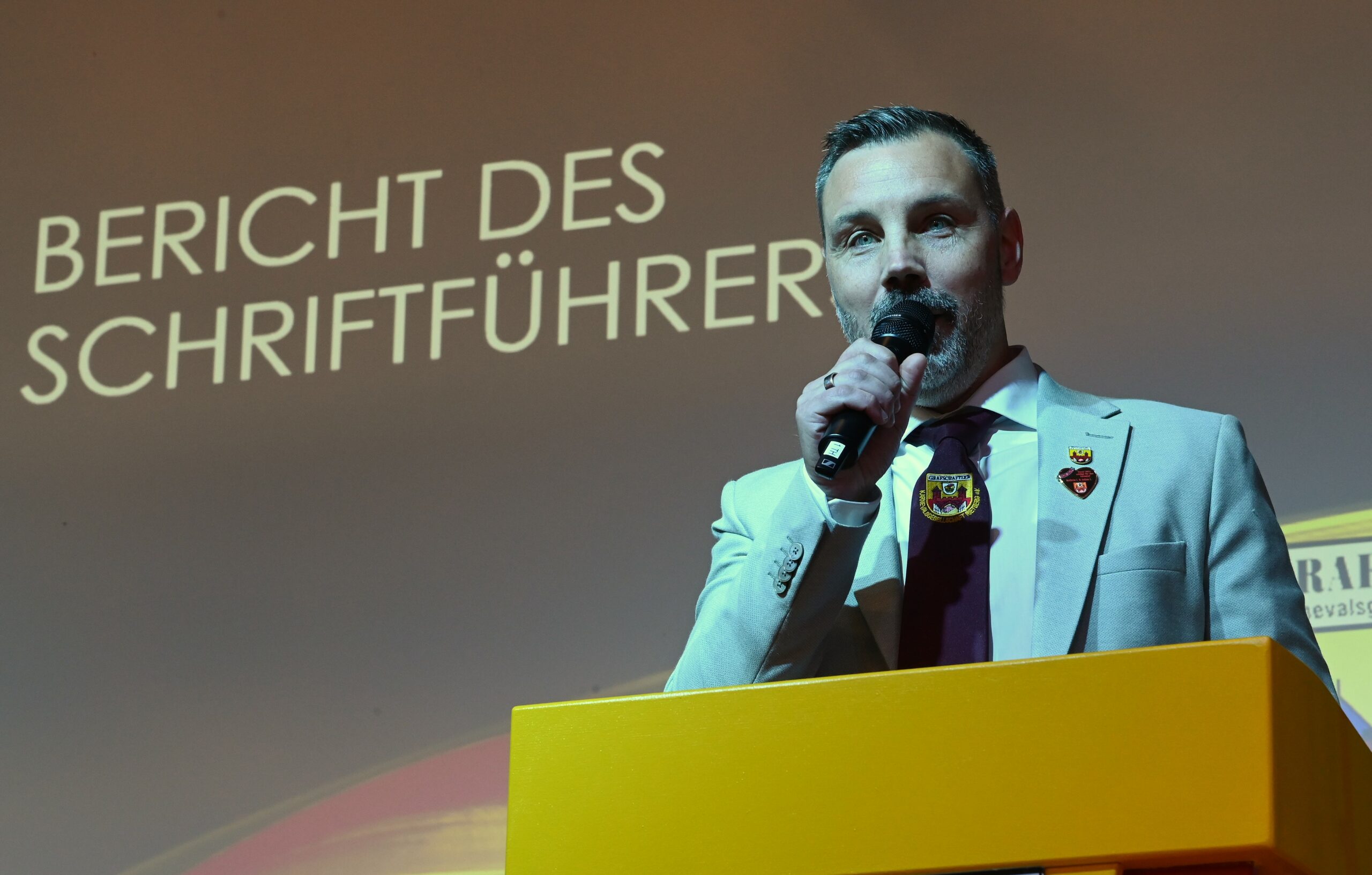 Holger Hanhardt, Präsident der Grafschaftler Karnevalsgesellschaft, stellte die Bemühungen um ein neues Vereinsheim vor. Das Feuerwehrgerätehaus Rietberg könnte die neue Heimat der Jecken und Wagenbauer werden. (Fotos: RSA/Pfaff)