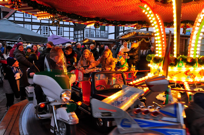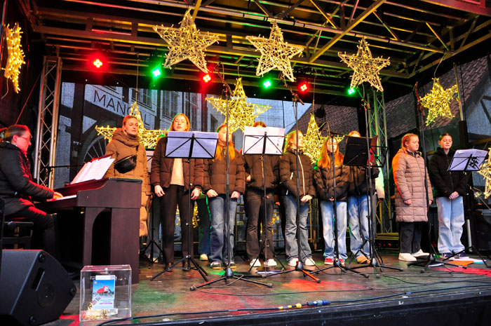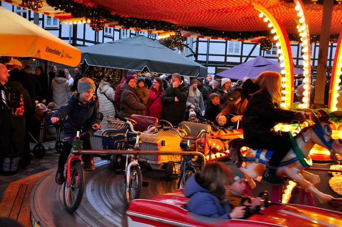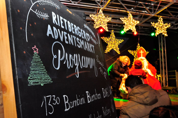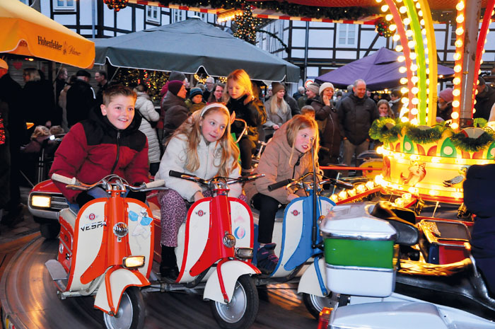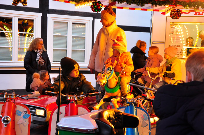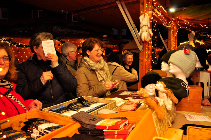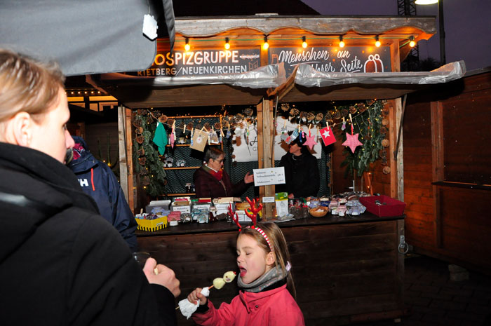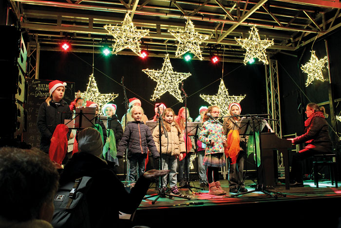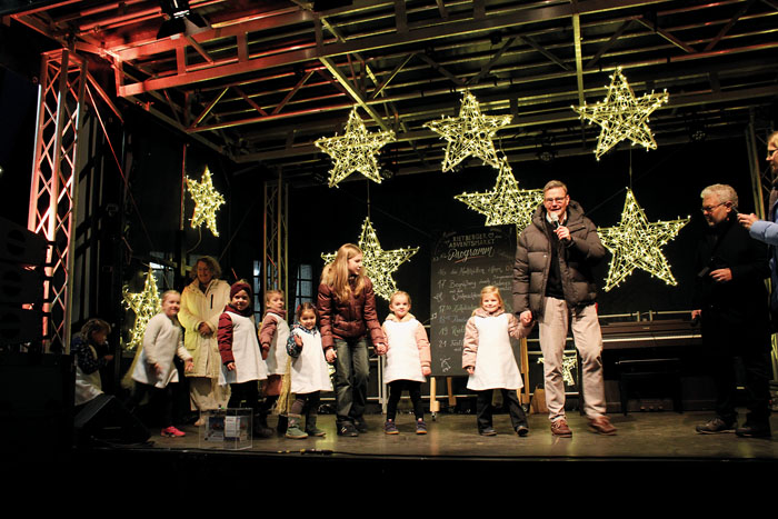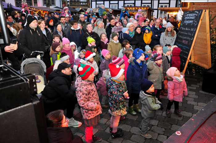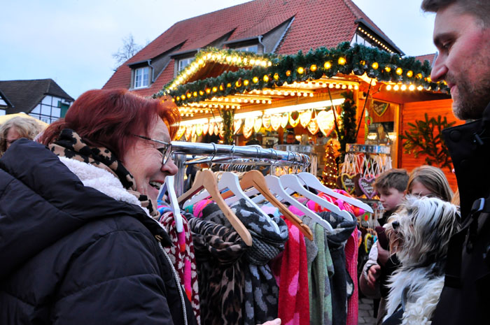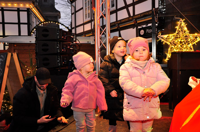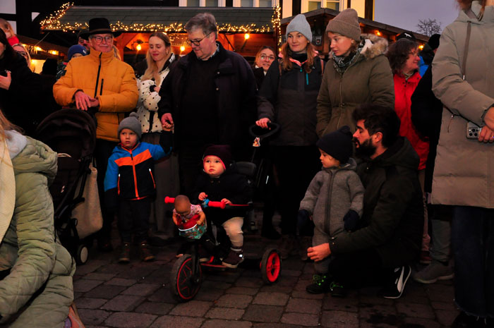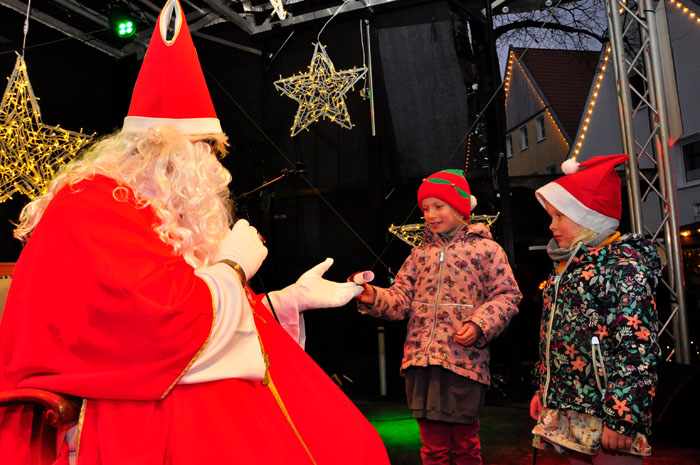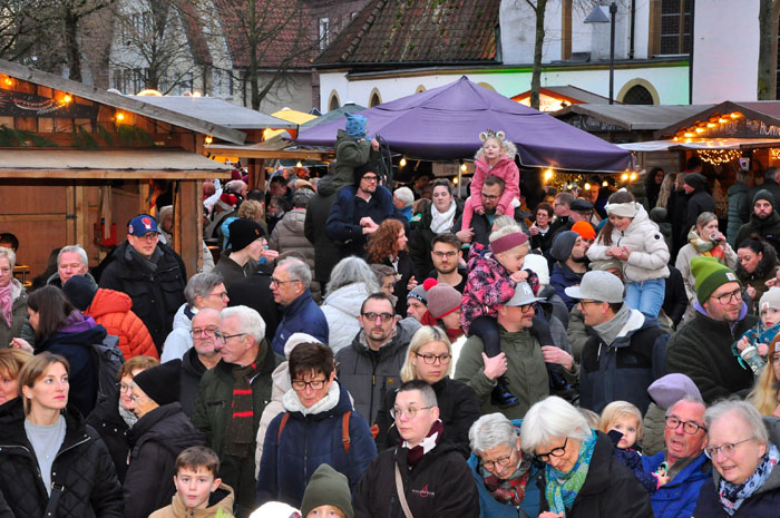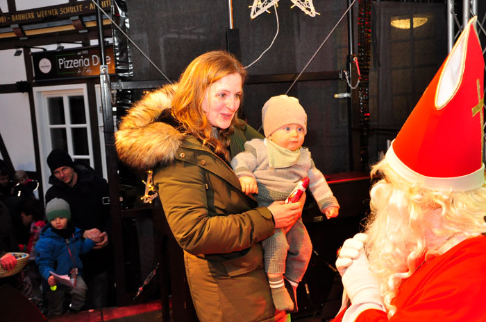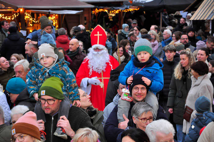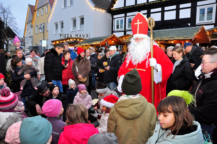 Rietberg (dg). Kinderaugen strahlen beim Nikolaus, Erwachsene beim Glühwein. Fünf Tage gab es ein gelungenes Programmpaket mit heimischen Interpreten. Viele Chöre, Musik- und Tanzgruppen, Gesangssolistin Ulrike Greweling und der Nikolaus boten stilvolle Unterhaltung, der mit großem Applaus belohnt wurde. Die Markthütten schlängelten sich im Baustellen-Umfeld parallel an den Straßen bis zum Kirchenvorplatz. Ein Aufbau der Gefallen bei den Menschen fand. Gefüllt mit Speisen, Getränken und mancher erwärmenden Geschenk-Idee. Ein Markt als Besuchermagnet. Der Höhepunkt war am Sonntag, als der Nikolaus Süßes verteilte und Wunschzettel sammelte. „Was wünschst du dir vom Christkind?“, fragte er Mats (3). Antwort: „Einen Würstchen-Wärmer“ und trug damit zur fröhlichen Unterhaltung bei. Fotos: Rehling/Peine