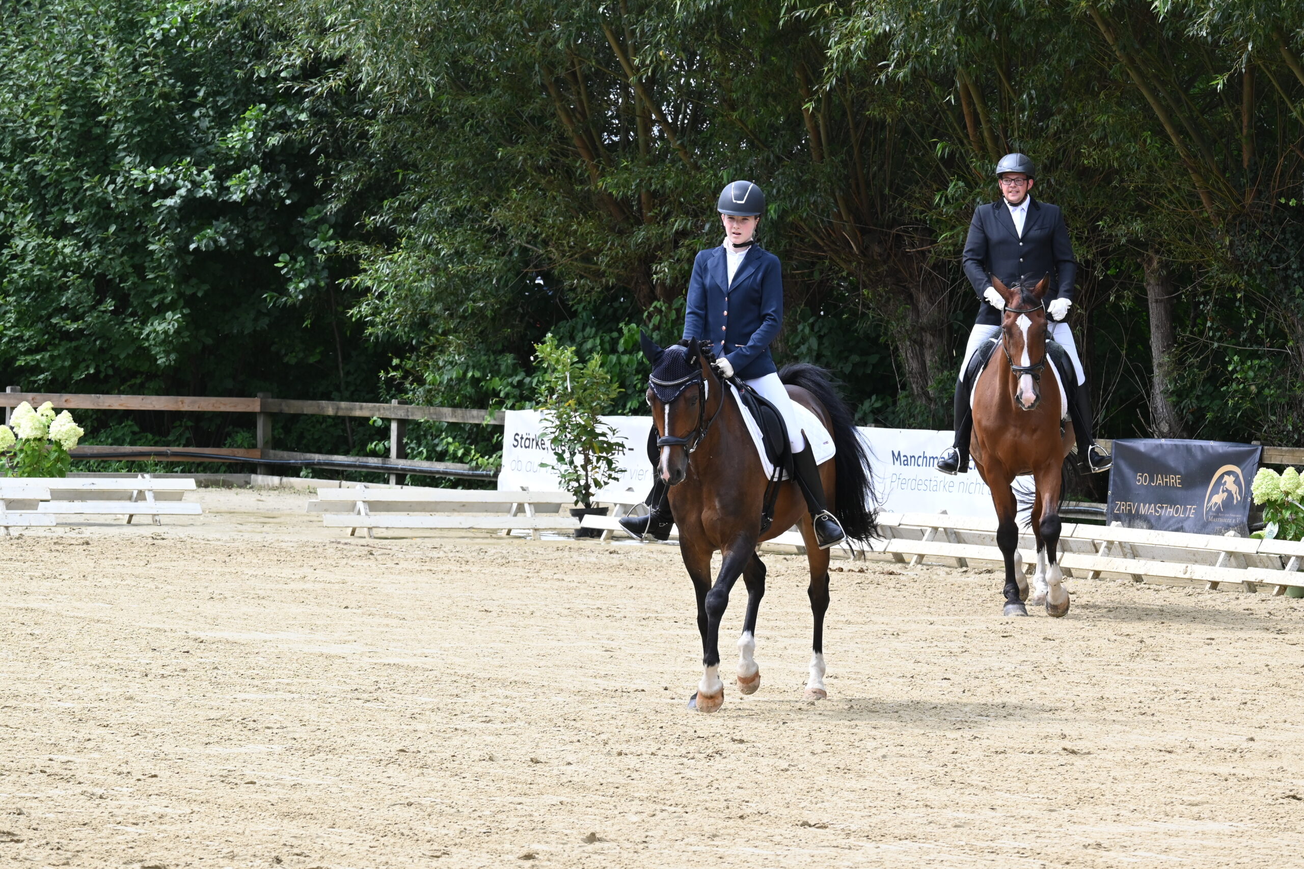 Während in Paris bei den Olympischen Spielen die deutschen Dressurreiter aus Medaillenkurs waren, lockte Mastholte mit einem ausschließlich für Dressur ausgeschriebenem Turnier. Anlässlich des 50-jährigen Jubiläums hatte der ZRuF Mastholte erstmals eine S-Prüfung mit doppelten Sternchen ausgeschrieben. „Die Nennungen dazu waren gleich gut. Alle Startplätze sind belegt“, freute sich Tim Hauptstein, Pressesprecher des Vereins. 21 Paare gingen hier an den Start, darunter mit Wiebke Röper auch eine Lokalmatadorin, die mit Magic Brandy Candy 701 Punkte erreichte.