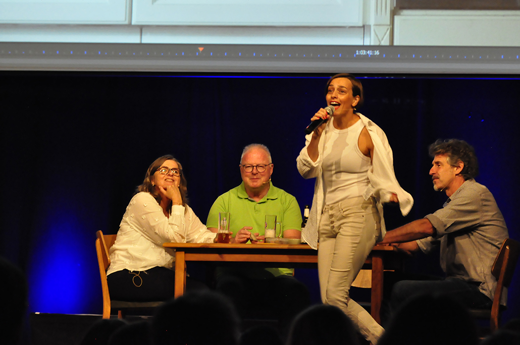 Rietberg (dg). Ein Jahr haben sie intensiv geprobt. 23 Ensemble-Mitglieder des Musicals „Stark“, aus der Feder von Regina und Gerd Frerich. Es ist das vierte Werk dieser kreativen Musiker aus Bokel. Zeitkritisch, auffordernd, Mut machend, formen sie den Inhalt. Entdeckt durch sensible Beobachtung im ganz normalen Alltagsleben der heutigen Zeit. Karl, der junge Hauptdarsteller, erlebt die Trennung seiner Eltern. Den Vater als Trinker und eine für ihn nahezu ausweglose Situation, an dem alle Aufgaben hängenbleiben. Zu ihm hält Anni, eine begabte Sängerin und Freundin die ihn verbal aufbaut und Mut zuspricht. Besonders in der Situation als er seinen Wunsch äußert, Ballett-Tänzer zu werden. Es erinnert ihn an das wohlige Familienleben auf dem Bauernhof. Die Mädchen-Clique gründen eine Band und bewerben sich beim Talent-Wettbewerb mit dem Song „Song ich bin stark“. Einer von 13 Titel, die von Frerichs komponiert wurden und den roten Faden in der Handlung bilden. Diese ist in acht Szenenbildern aufgebaut, welche die positive Entwicklung von Karl realistisch präsentieren. Von Mitschülern wird Karl massiv gehänselt als er seine Ballett-Absichten erzählt. So erniedrigt dreht er den Spieß um und prahlt mit Taten wie Autofahren und Rauchen, nur für ein wenig Anerkennung. Das ging schief als die Schüler ihn nach einer Spritztour fragen. Karl outet sich mit Mut und gewonnenem Selbstbewusstsein, und trifft damit auf Verständnis. Schwester Lilly bekennt vor allen anderen mit: „Mein Bruder ist das Größte auf der Welt“, ein Lied was ihn stolz und glücklich macht. Das Musical endet nach rund zwei Stunden mit einer fulminanten Casting-Show und glücklichen Protagonisten. Dickes Kompliment für Aufführung, Inhalt sowie schauspielerische Leistung des gesamten Ensembles.